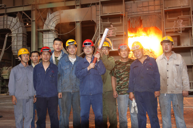 奧運(yùn)火炬在生產(chǎn)線傳遞