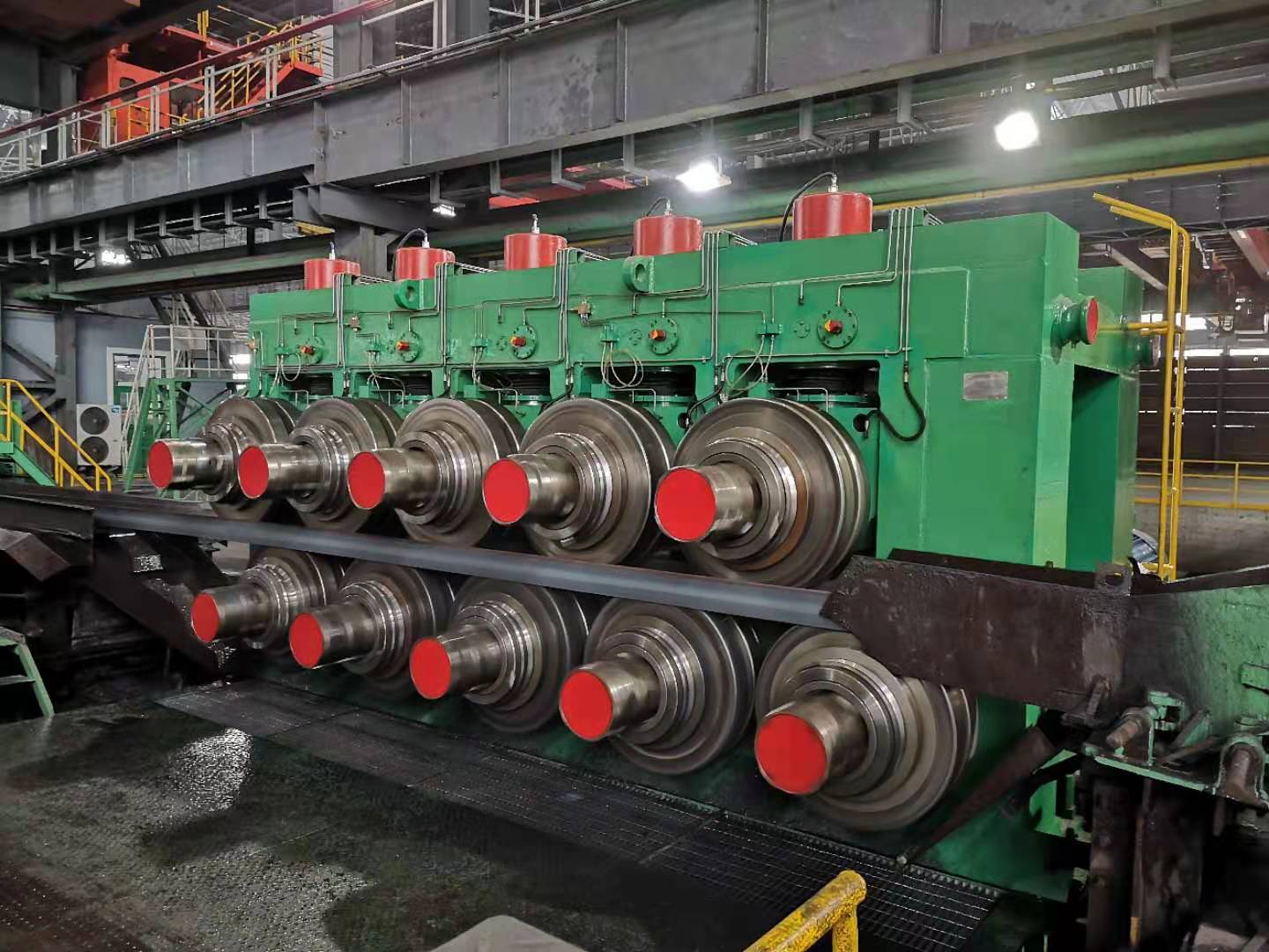 連鑄—連軋短流程生產(chǎn)線具有世界先進(jìn)水平,主要裝備有: 雙蓄熱步進(jìn)式加熱爐、1000兩輥開坯軋機(jī)、十一架高剛度短應(yīng)力線連軋機(jī)、155m步進(jìn)式冷床、900十輥矯直機(jī)、1100十輥矯直機(jī)、移動(dòng)式冷鋸、型鋼自動(dòng)包裝機(jī)等,采用了熱裝熱送、高壓水除鱗、控制軋制、控制冷卻、長(zhǎng)尺矯直、冷鋸定尺、自動(dòng)包裝、微機(jī)自動(dòng)化控制等世界領(lǐng)先的工藝和技術(shù)。