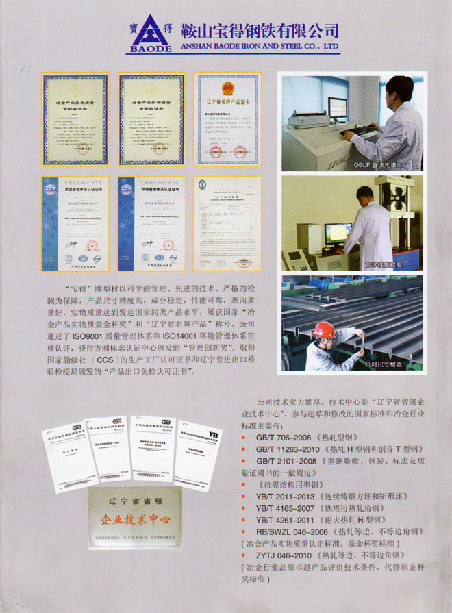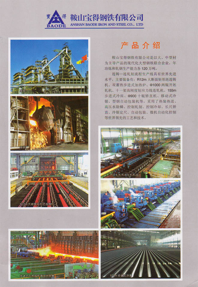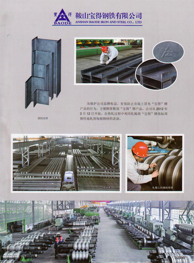 12月19日,公司新版產(chǎn)品樣本制作完成。該樣本全面介紹公司120萬噸型鋼、H型鋼生產(chǎn)線擁有國際先進(jìn)的工藝、設(shè)備情況,以及公司實(shí)施名牌戰(zhàn)略生產(chǎn)的高品質(zhì)型鋼產(chǎn)品。該樣本2開4頁,印刷精良,印刷3萬冊,已開始面向客戶發(fā)放。