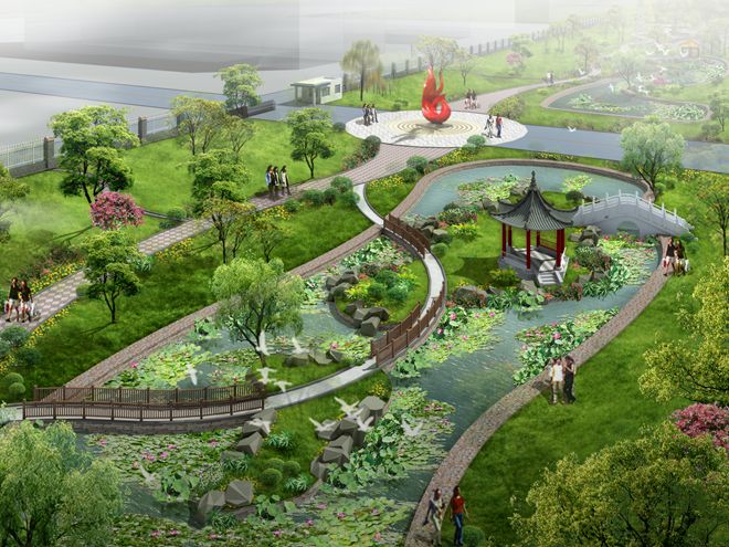 圖為荷花池園林景觀(guān)效果圖