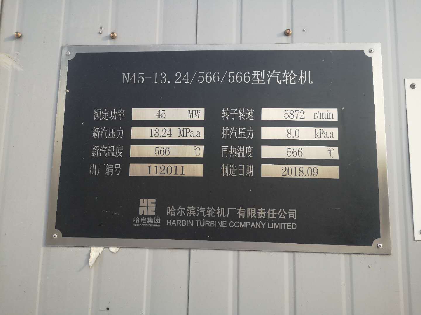 ![]() 發(fā)電汽機銘牌 |